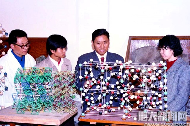彭志忠与结晶矿物学的结缘得益于余瑞璜先生。余瑞璜先生是著名物理学家,被国际晶体学界誉为国际一流的晶体学家,曾在1942年创立了X射线晶体结构分析新综合法。大学期间,彭志忠就经常到物理系听余瑞璜教授讲课,在听了余瑞璜教授的一次报告后,他就对矿物晶体结构发生了兴趣。为此,他到图书馆查阅了有关矿物学的文献,看到上面选用的晶体结构模型全是外国人做出的,他想:书上哪怕有一个晶体结构模型是中国人做出的也好呀!彭志忠痛惜我国结晶矿物学几乎空白的现状,这个曾经萌生强国梦的青年,第一次确立了他人生的方向,从此坚如磐石。心之所向,根之所系。年轻的彭志忠从此自觉扛起让中国晶体学攀登世界科学高峰的担子,毅然行走在科技报国的道路上。
