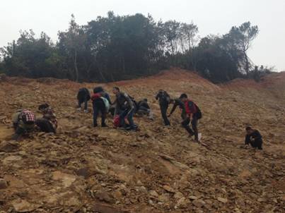 通讯员:田力2015年11月28日,地球科学学院2014级地质学基地班同学,前往武汉市江夏区花山大道附近,进行了《古生物学》的野外教学活动。师生一行四十余人,不畏冬雾天的寒风,一到达现场,就爬到山上的露头边,一锤一锤的寻找已经在岩石中沉睡了四亿多年的志留纪生物化石标本。