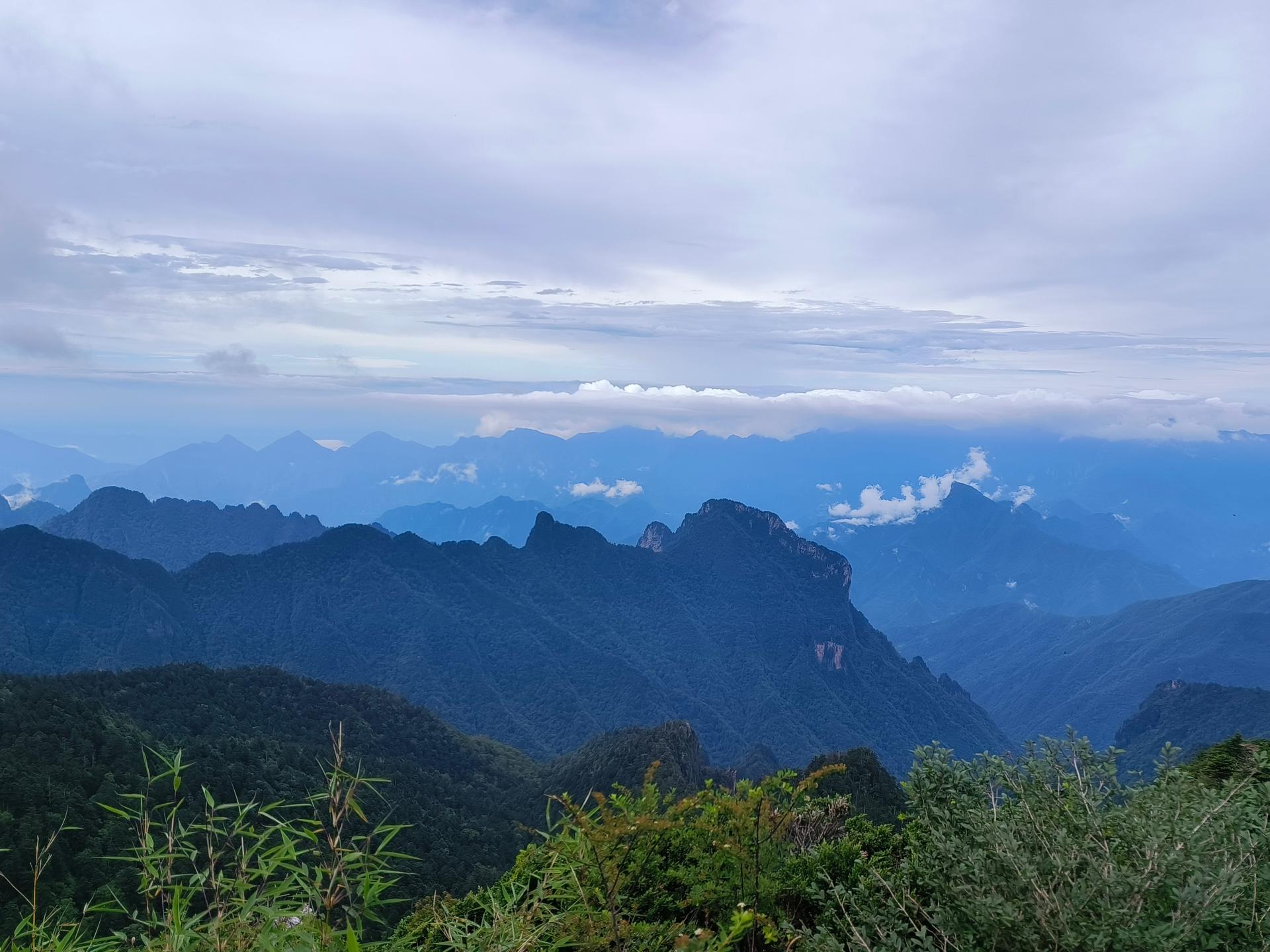 云雾散去,海拔两千多米的高山上的太阳可真毒,大家不得不披上防晒衣。空气确实清新,丝毫没有工业化的污染,蓝天,白云,总让人心头舒畅。