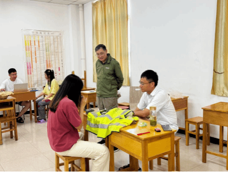 9日下午,院领导首先走进学生宿舍,了解学生们的住宿情况及生活保障情况。刘世勇与学生们亲切交流,详细询问学生们野外实习的收获与体会。他谈到,周口店作为我校历史最悠久的野外实践教学基地,70余年来从这里走出了一大批杰出校友,被誉为“地质工作者的摇篮”。他勉励学生们要以老一辈地质工作者为榜样,深刻领悟和传承发扬“摇篮精神”“攀登精神”,开拓进取,奋发有为,在野外实践中努力锤炼过硬专业本领,培养艰苦奋斗的精神和克服困难的勇气,为未来继续攀登科学高峰、服务国家地质事业发展打下坚实基础。李欢欢也特别强调了实习期间的安全注意事项,希望同学们牢固树立安全意识,在确保安全的前提下,圆满完成各项实习任务,以周口店实习为起点,在未来的学习科研中继续攀登新的更高峰。