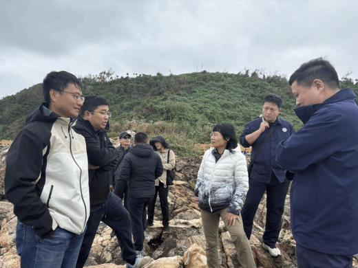 木兰湾的变质岩考察将“导学共研”推向高潮。在海风凛冽的基岩海岸,现场演变为一个开放的学术研讨平台。李益龙老师引导大家关注片麻理构造现象,刘嵘老师则从矿物组合的微观特征进行补充阐释。随行的地质局专家结合区域勘探实践经验,系统介绍了宏观地质背景和当前研究程度。师生与产业专家围绕“海南岛构造单元划分和演化”开展了深入讨论,不同学术观点在海浪拍岸声中激烈交锋,地学知识在共享与互动中得以有效建构与深度内化。