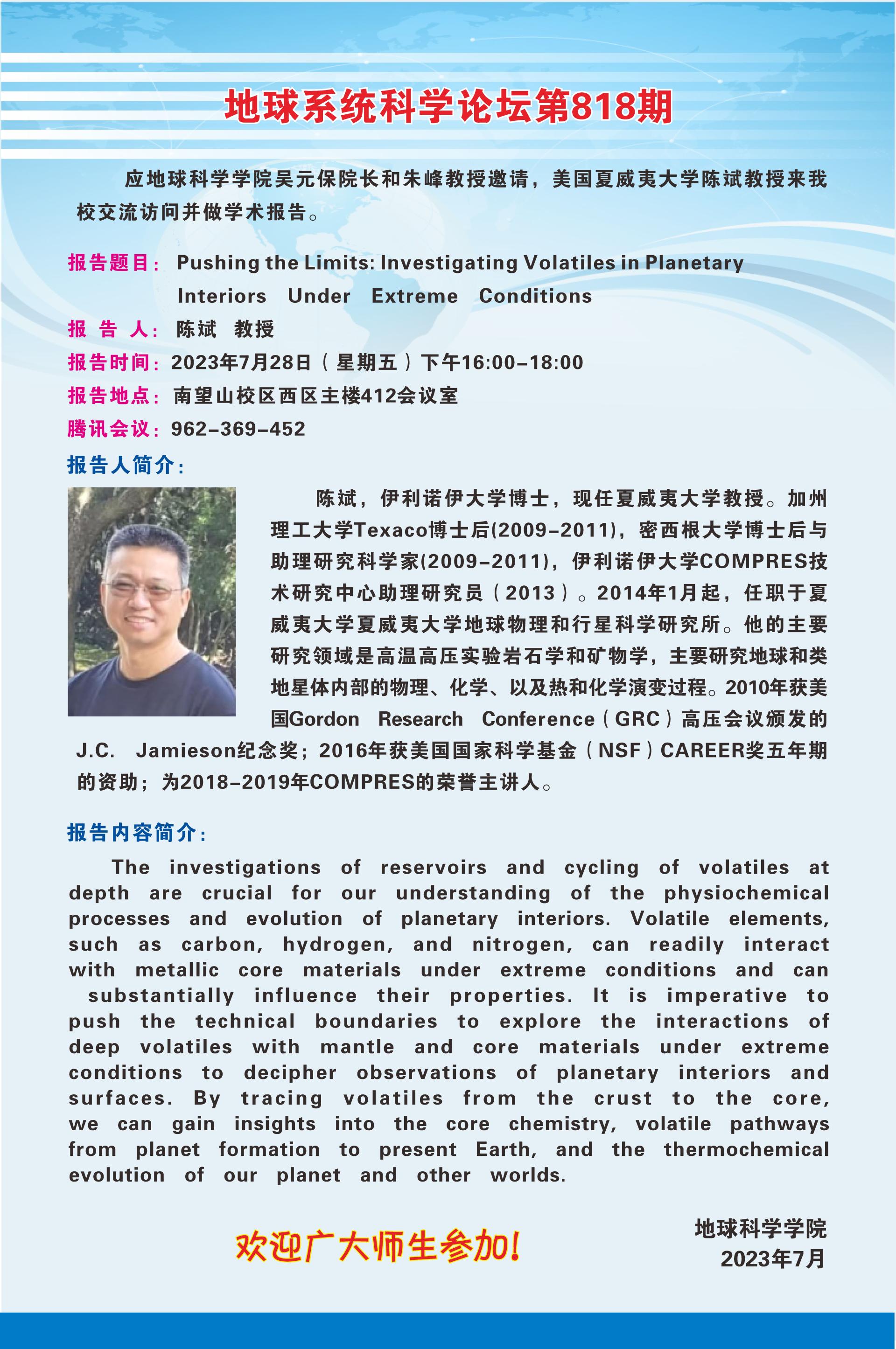 【7月28日】地球系统科学论坛(第818期)-陈斌教授