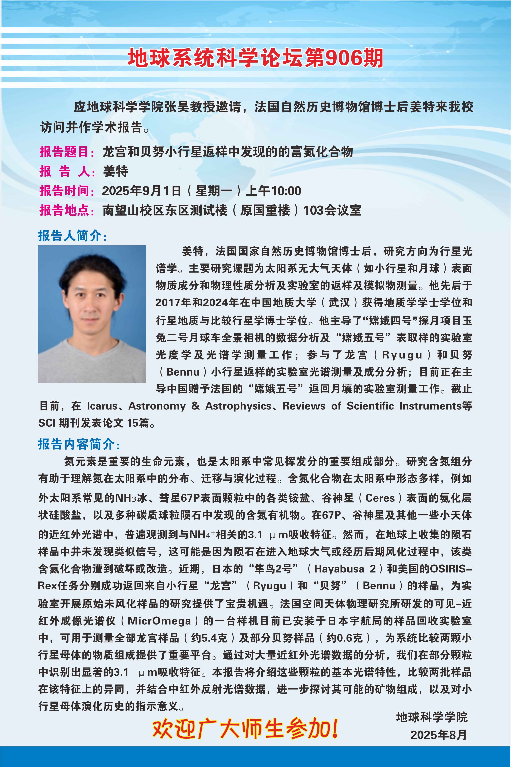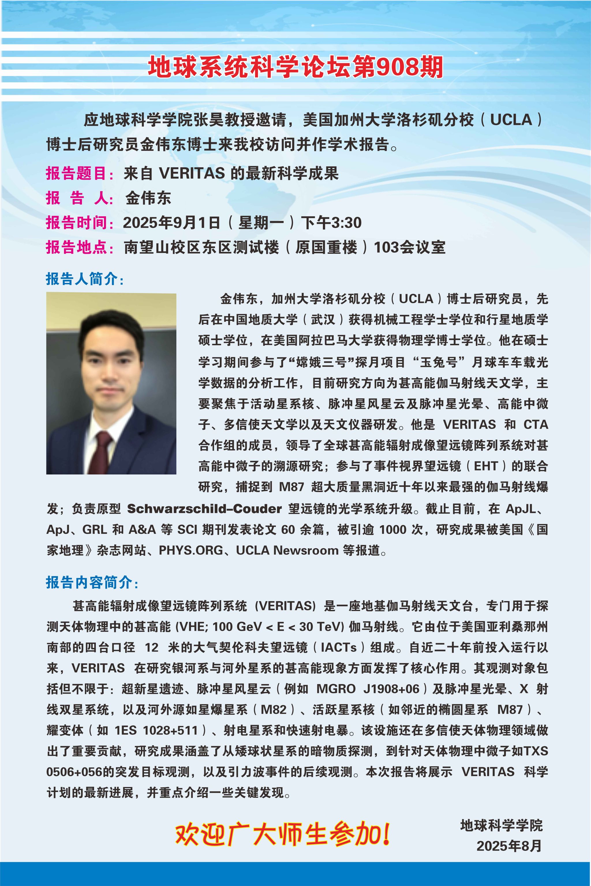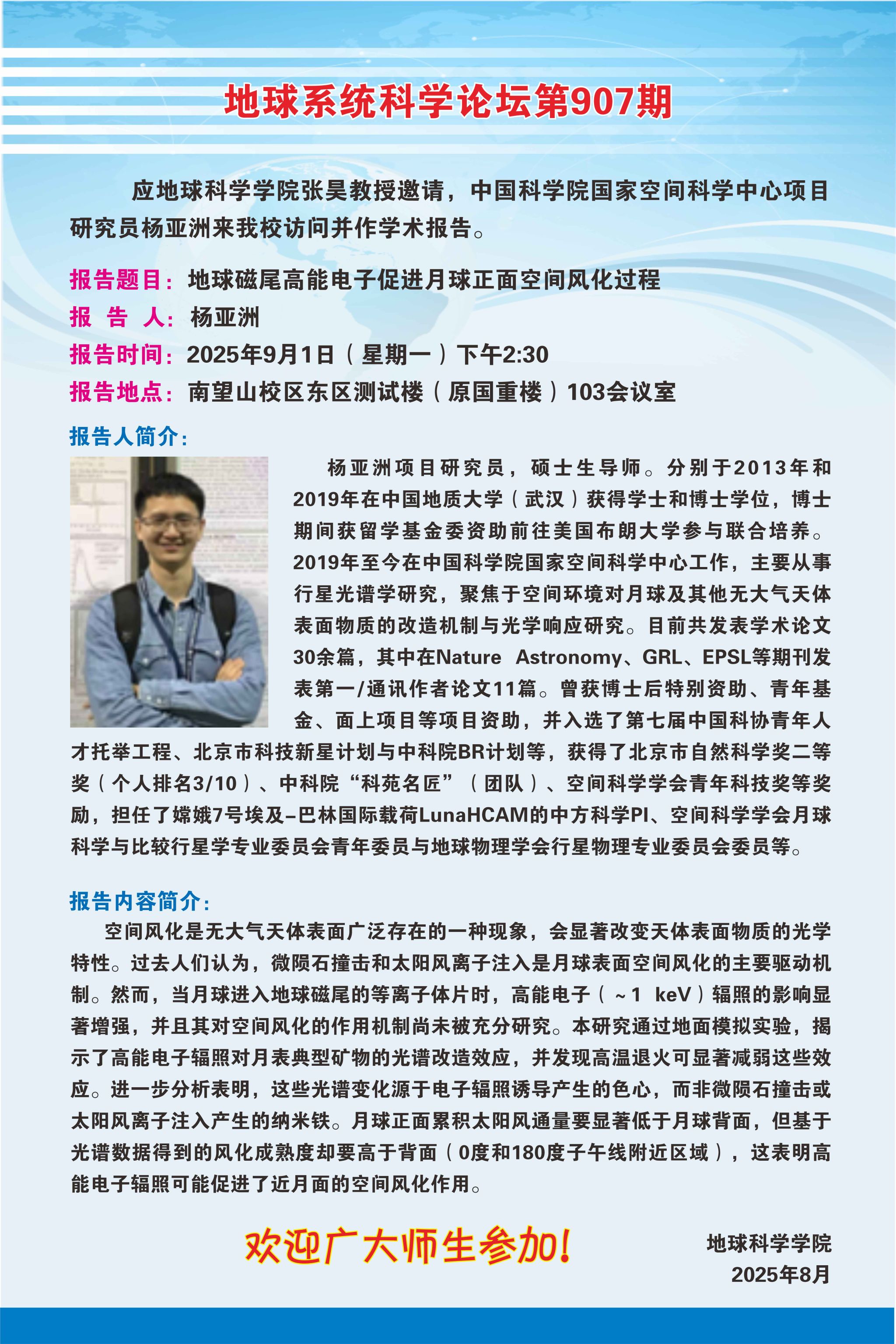 【9月1日】地球系统科学论坛第906-908期:姜特、杨亚洲、金伟东