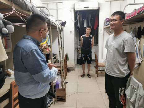 四、强化班主任、导师作用发挥。本科生层面,10月17日至21日,辅导员与每一位班主任进行了点对点的交流,将学校近期突发事件、疫情防控形势、安全稳定态势逐一告知班主任老师,陪同班主任下宿舍、走访学生学习室,与班主任一道共同做好本科生的思想引领和教育管理工作。010212班班主任刘勇胜前往珠峰班学习室走访,陈唯在操场开展“班主任有约”活动与学生当面交流;01D221班班主任王国庆、陈明,x11213班班主任曹凯,x11214班班主任周光颜,x11201班班主任苏玉平,x11195班班主任黄俊等老师下宿舍走访。研究生层面,结合研究生院“研途护航·师生心语”活动,将谈心谈话作为重点,围绕当前研究生成长新特点和疫情防控新形势,深入了解研究生的思想、学习、工作、生活、家庭、情感、身心健康等状况。10月17日,就重要时间节点学生思想动态关注、暂缓返校学生关心、学生管理规定、疫情防控要求等事项,撰写《致导师的一封信》,点对点发送给导师们,与导师一起加强人文关怀,形成育人合力。