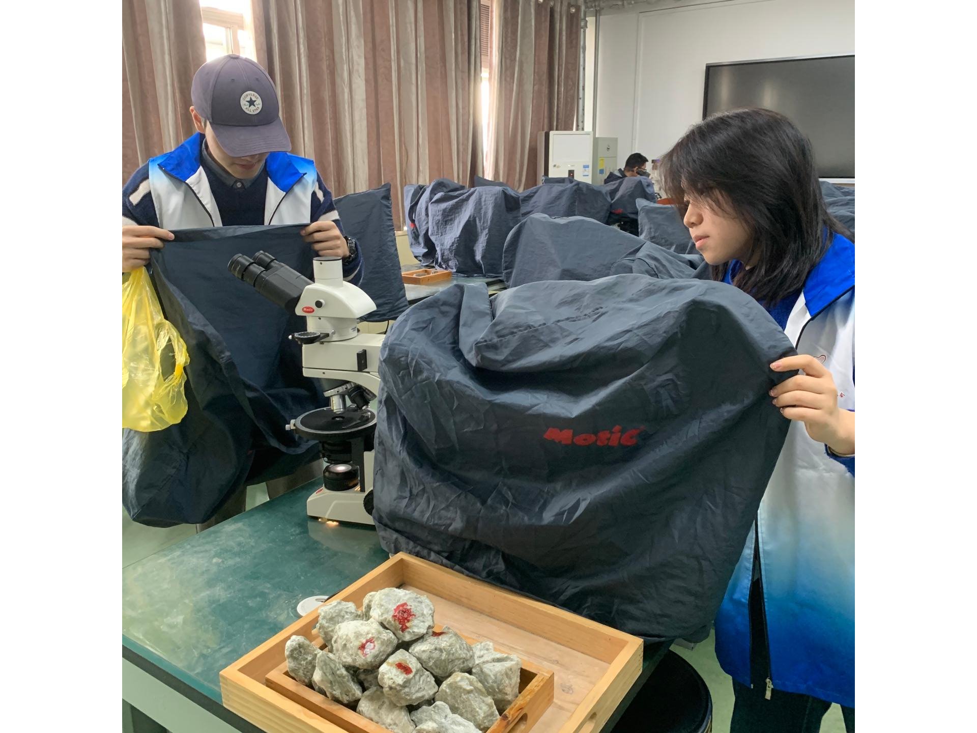 结合学院地球古生物学特色,组织学生前往院实验中心标本室,进行化石标本整理、保养和修复的工作,使学生亲身体验理论知识与实践应用的有机结合,让学生们在细致入微的劳动过程中,启发学生专业劳动热情和创造能力,增强学生专业认同感,培育精益求精的劳动品质。