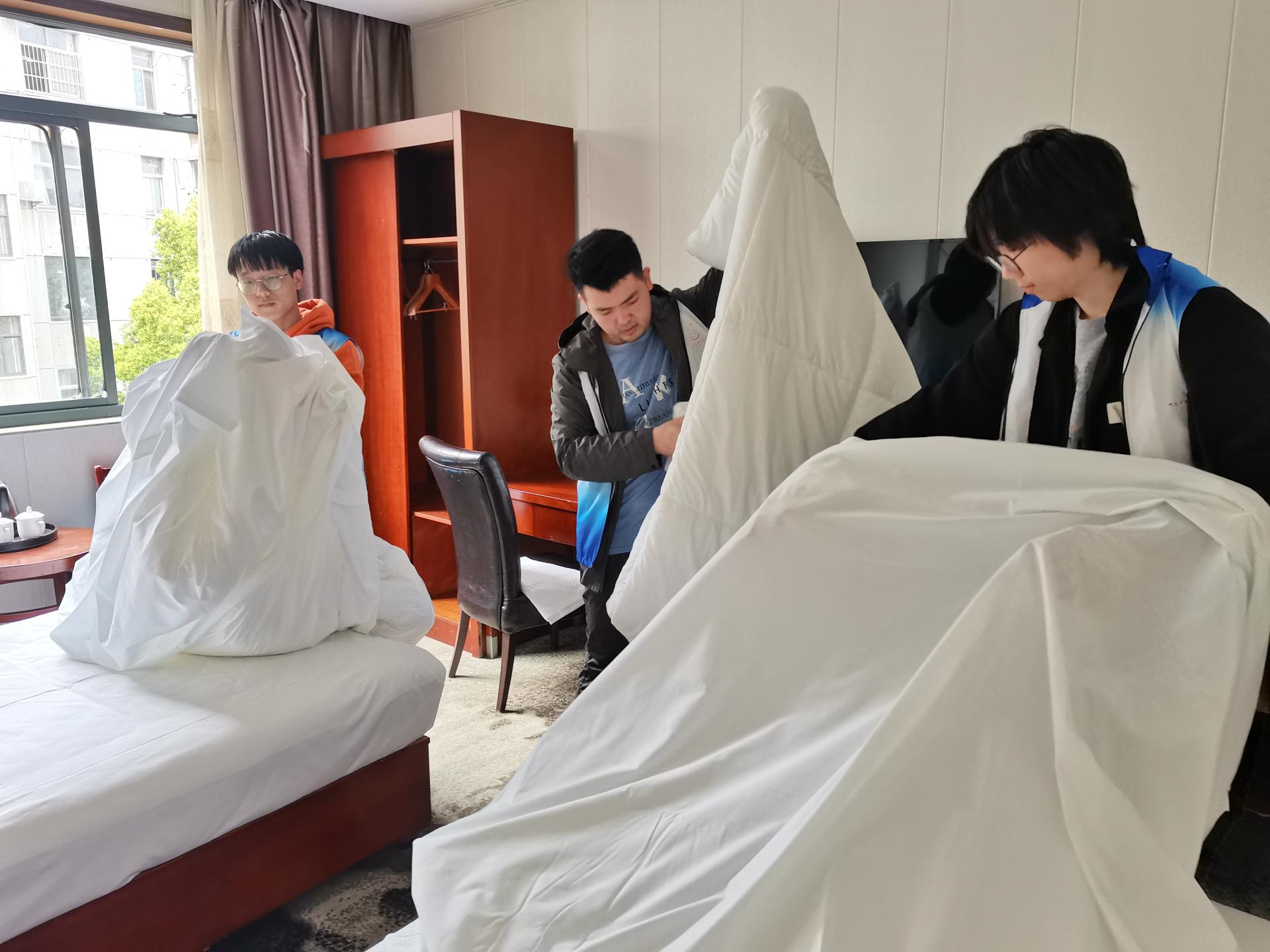 010212珠峰班团支部与后勤保障部接待服务中心党支部开展结对领航,为进一步开展劳动教育搭建好联系交流的平台,助力学生全方位成长。4月15日,010212珠峰班团支部参加大学生劳动技能比赛,上手学习中式铺床及衣物折叠等各类房间整理生活技巧,在动手实践和比赛中,真切感受到“劳动最光荣,奋斗最幸福”的真谛,培养正确的劳动观念和劳动习惯,提高综合素质和社会责任感。