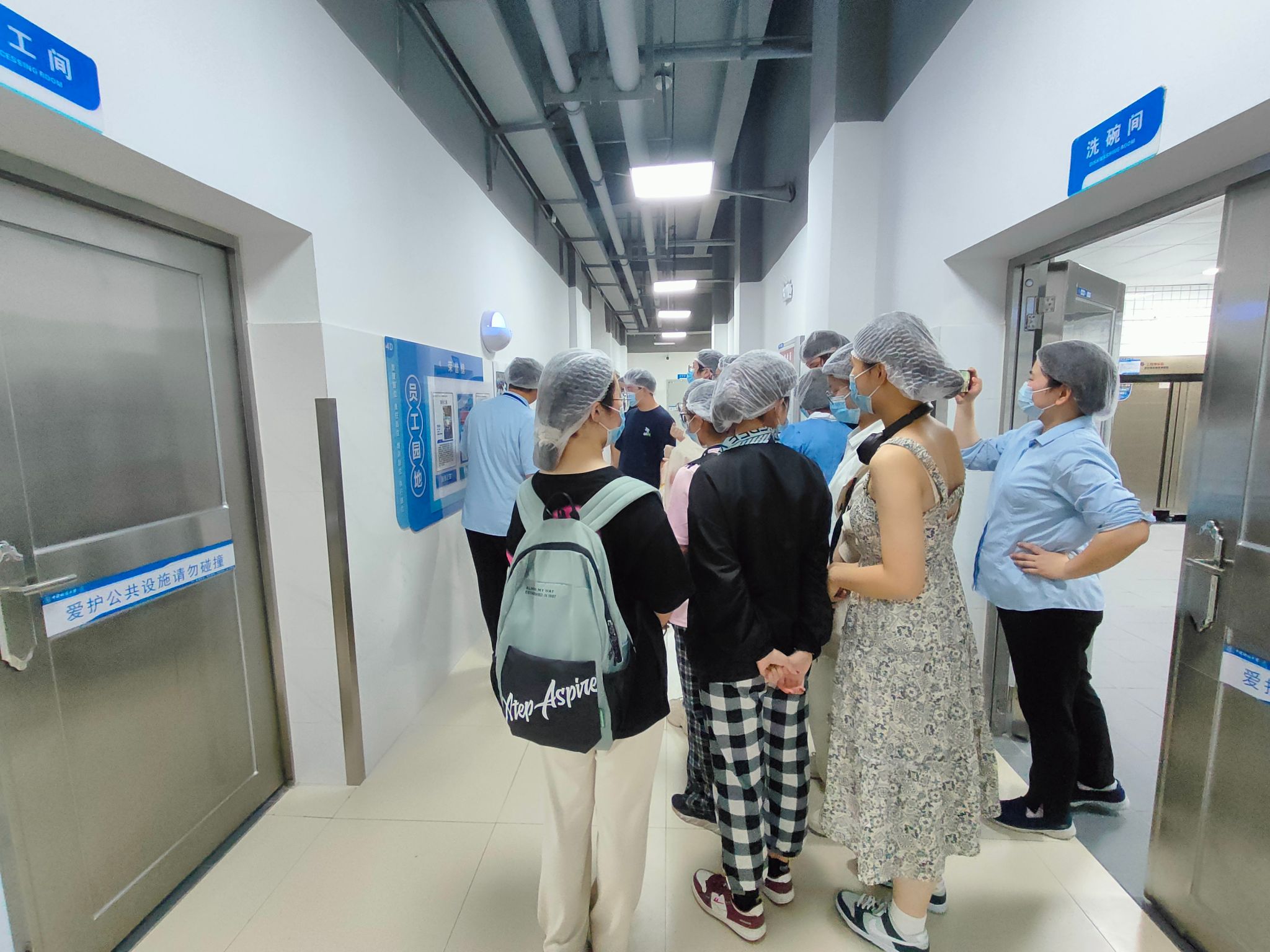 随后,为了让学生们更加了解食堂的运作情况,饮食服务中心还安排了一次特别的探访北区食堂后厨的环节。学生们在食堂工作人员的带领下,参观后厨的各个环节,了解了食材的储存、加工和烹饪过程。