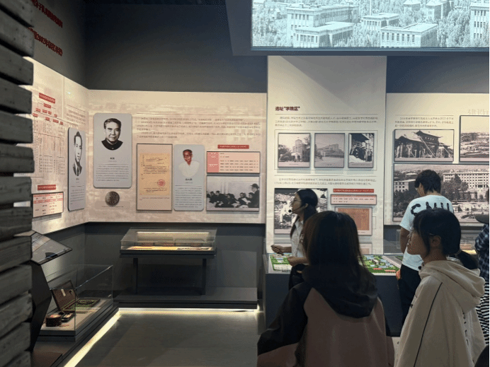 为深化理论学习,传承红色基因,推动校史文化与团日主题的深度融合,9 月24日,地球科学学院01D243团支部联合远程继续教育学院,在学校校史馆开展了一场以 “校史为脉,青春为笔” 为主题的团日活动。本次活动采用 “现场参观+互动交流” 的沉浸式体验方式,让青年团员在校史实景中感悟精神力量。