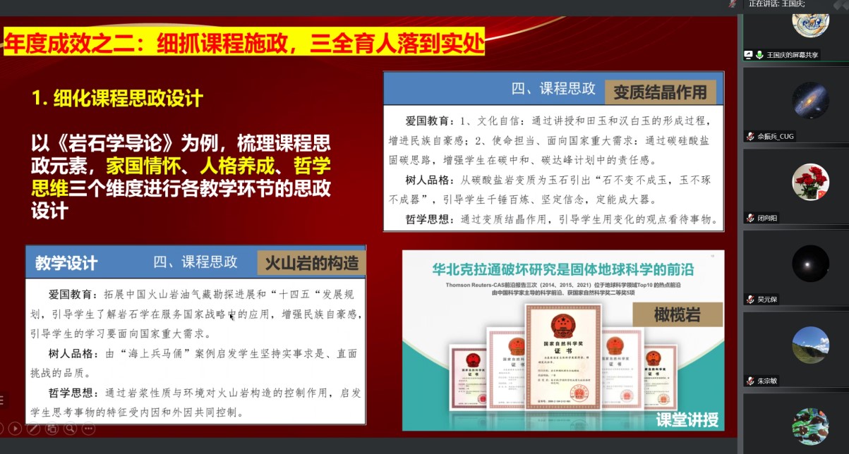 王国庆副教授作“岩石学”教学团队2022年度工作汇报