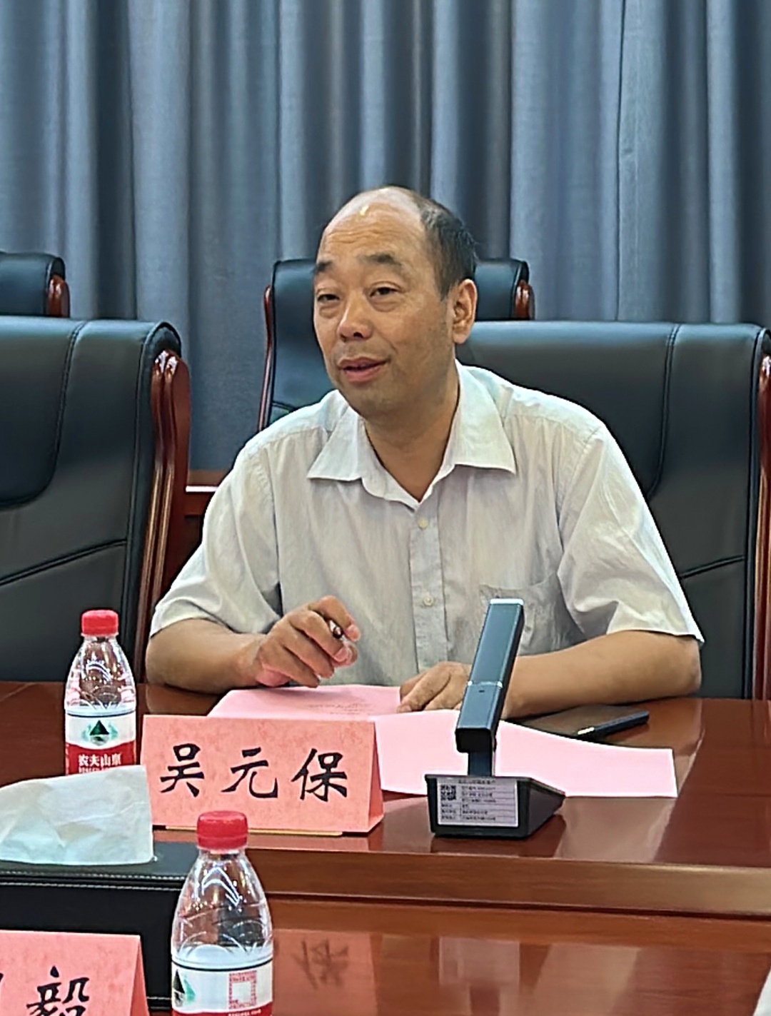 我院院长吴元保介绍了学院本科和研究生教育、科学研究和平台建设、国际化与一流学科建设、学院办学理念等方面的情况。他表示,两院同为地质类学院,希望能结合两院发展现状,取长补短,实现优势互补,更好服务新一轮找矿突破战略行动。