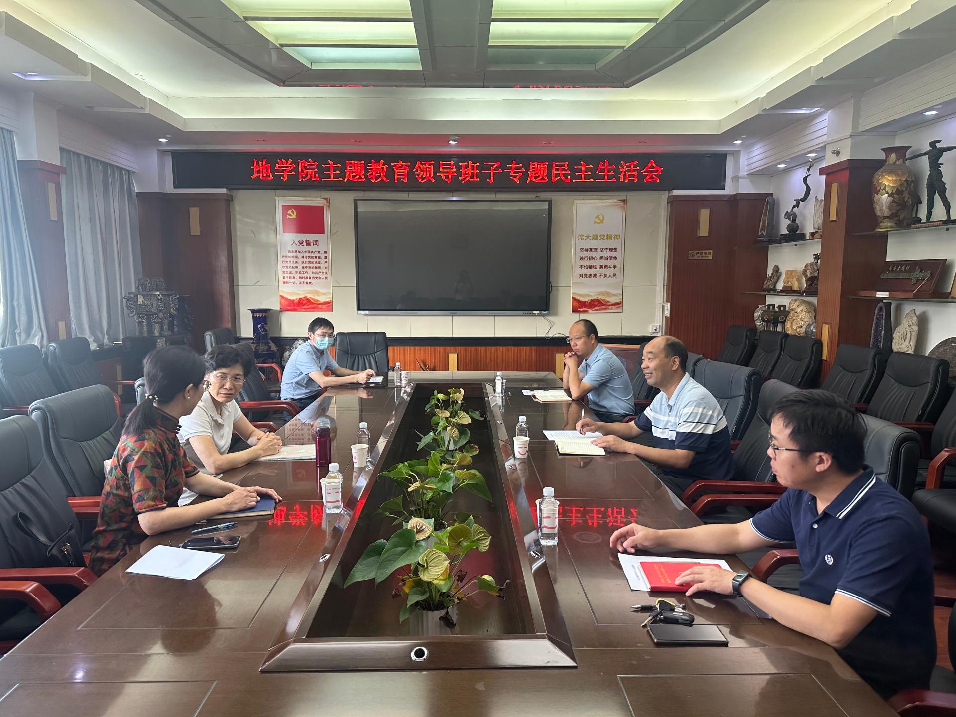 8月31日上午,地球科学学院召开学习宣传贯彻习近平新时代中国特色社会主义思想主题教育专题民主生活会,学校党委书记黄晓玫、学院领导班子成员参加专题民主生活会,学院党委书记周刚主持会议。